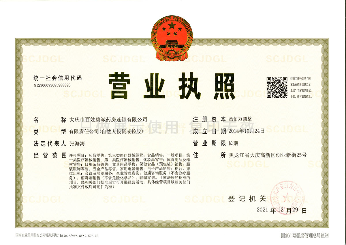 大慶市百姓康誠(chéng)藥房連鎖有限公司成立于2014年10月,是大慶首批新版GSP認(rèn)證的連鎖企業(yè),擁有3000多平米的儲(chǔ)物物流中心,公司制定從藥品采購(gòu)到入庫(kù)驗(yàn)收,倉(cāng)庫(kù)管理到銷(xiāo)售配送完善的管理制度和流程,經(jīng)營(yíng)化學(xué)制劑、中成藥、抗生素、生化藥品、生物藥品、中藥材、中藥飲片、蛋白銅化制劑、肽類(lèi)激素、醫(yī)療器械、保健食品等近2萬(wàn)個(gè)品規(guī),配送車(chē)輛24小時(shí)將藥品配送到位。